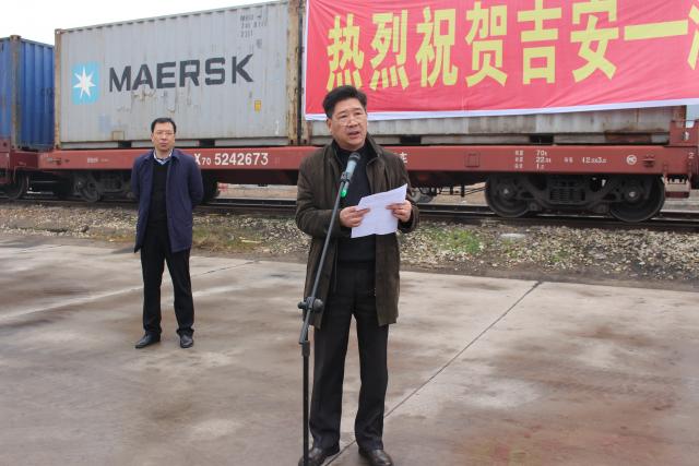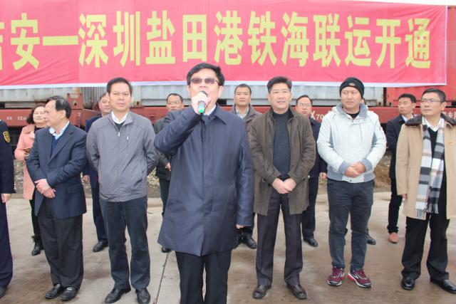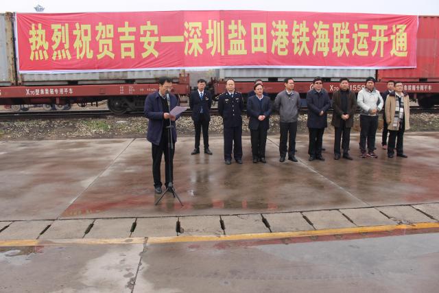 12月28日上午,吉安——深圳盐田港铁海联运开通仪式在吉安南站举行。副市长邓淑斌出席并宣布正式开通。井冈山经开区党工委书记彭学凯出席。盐田国际多式联运服务部总经理(平盐海铁联运董事及总经理)邓子彬、市商务局局长徐小腾、深圳铁海联合物流供应链管理有限公司周小青致辞。